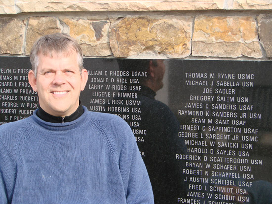 During the Thanksgiving holiday a few weeks ago, I took my wife, Sarah, and my parents, Bill and Helene, to visit the monument. Our dog, Carly, came, too. I was happy we all visited together. I know everyone appreciated it. My Dad is a Navy veteran and we shared a sense of pride. Sarah and my Mom found my name immediately. And I think Carly had fun, too, even though she appeared to be more interested in barking at the motorcycles that drove through downtown.